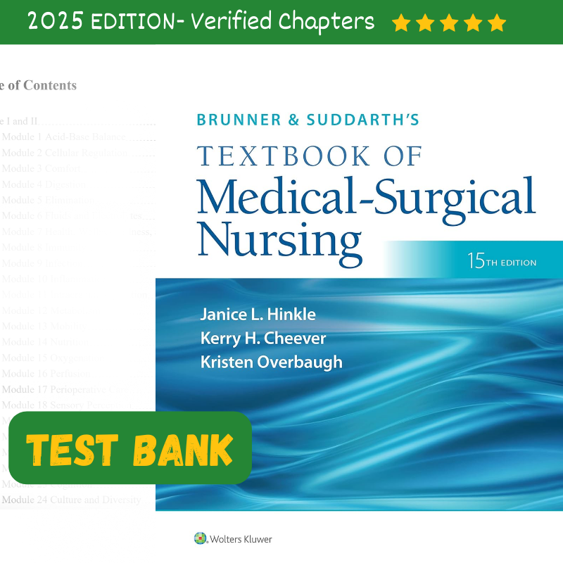 Test Bank For Brunner & Suddarth’s Of Medical Surgical Nursing By Hinkle 15th Edition